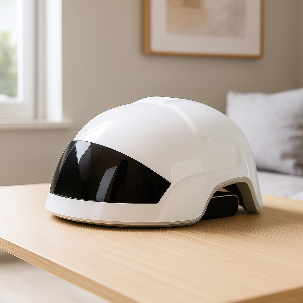 Engineered for ease of use, the helmet features a lightweight, ergonomic design, making it convenient for regular sessions. It fits comfortably into most daily routines and can be used without special preparation. The goal is to provide a consistent light experience in a familiar, at-home environment.